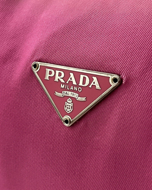 Prada 00s Vela Nylon Plaque Logo Pink Mini Hobo Bag