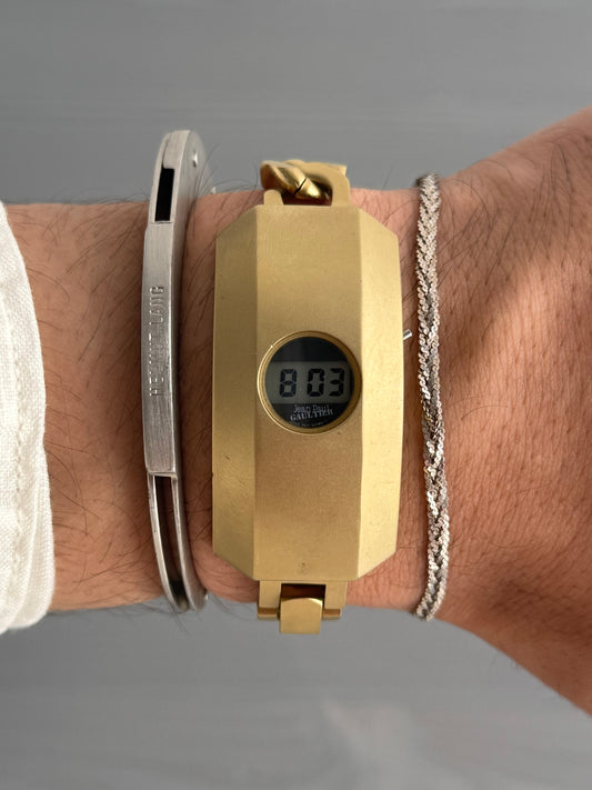 Jean Paul Gaultier 1990s Gold Colour Digital Technical Watch Bracelet