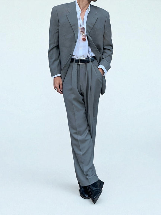 Armani 1990s Pleated Grey Wool Relaxed Suit - L Jacket / 36" Waist