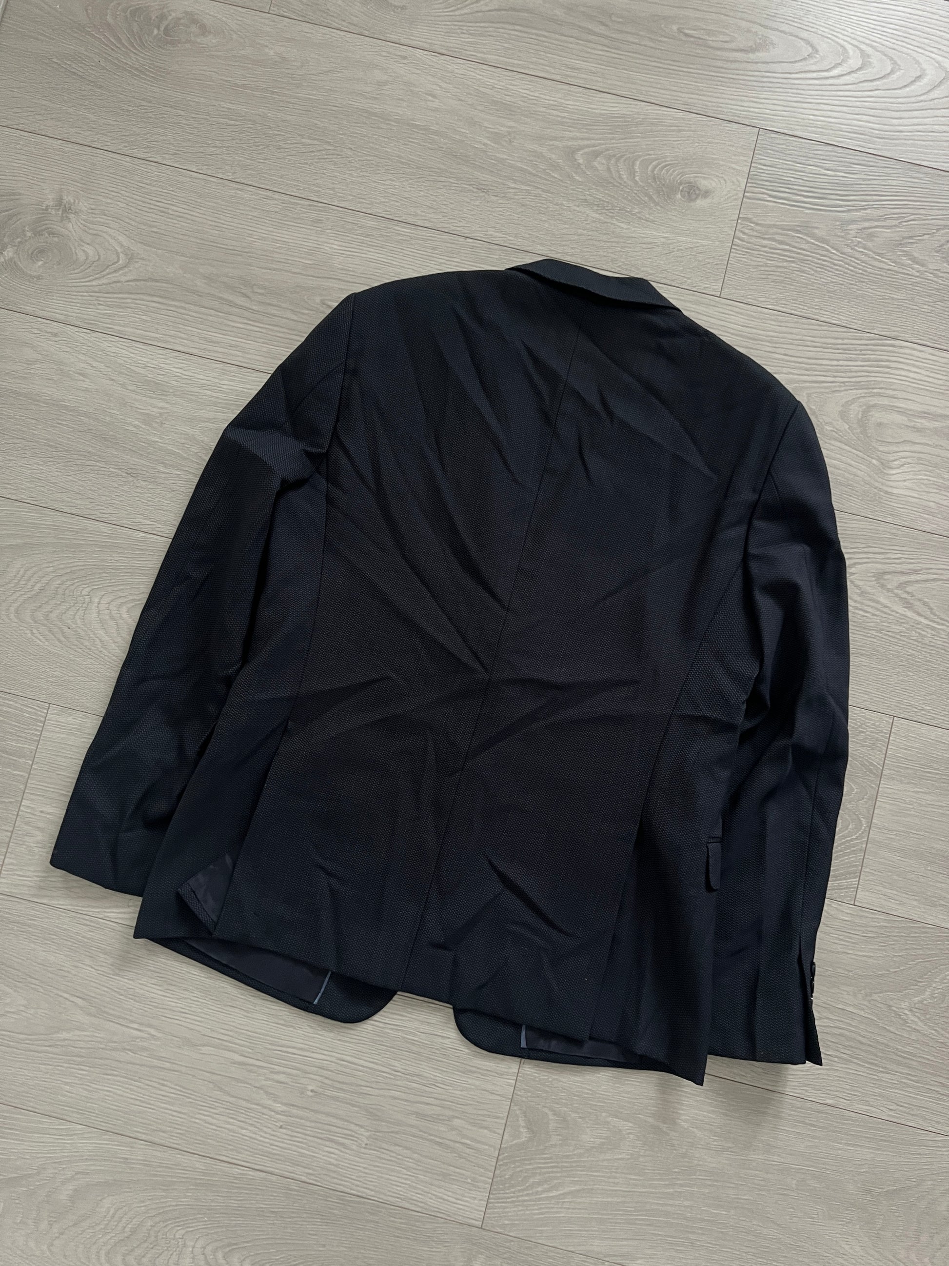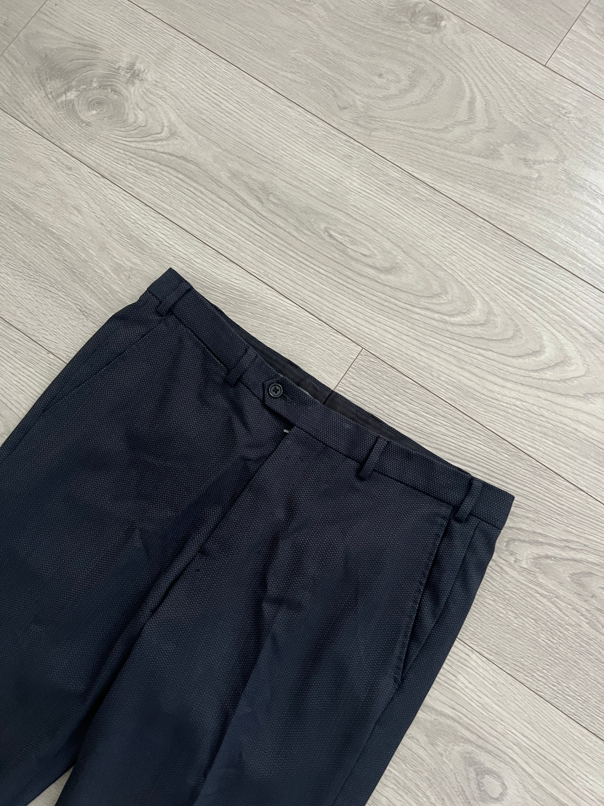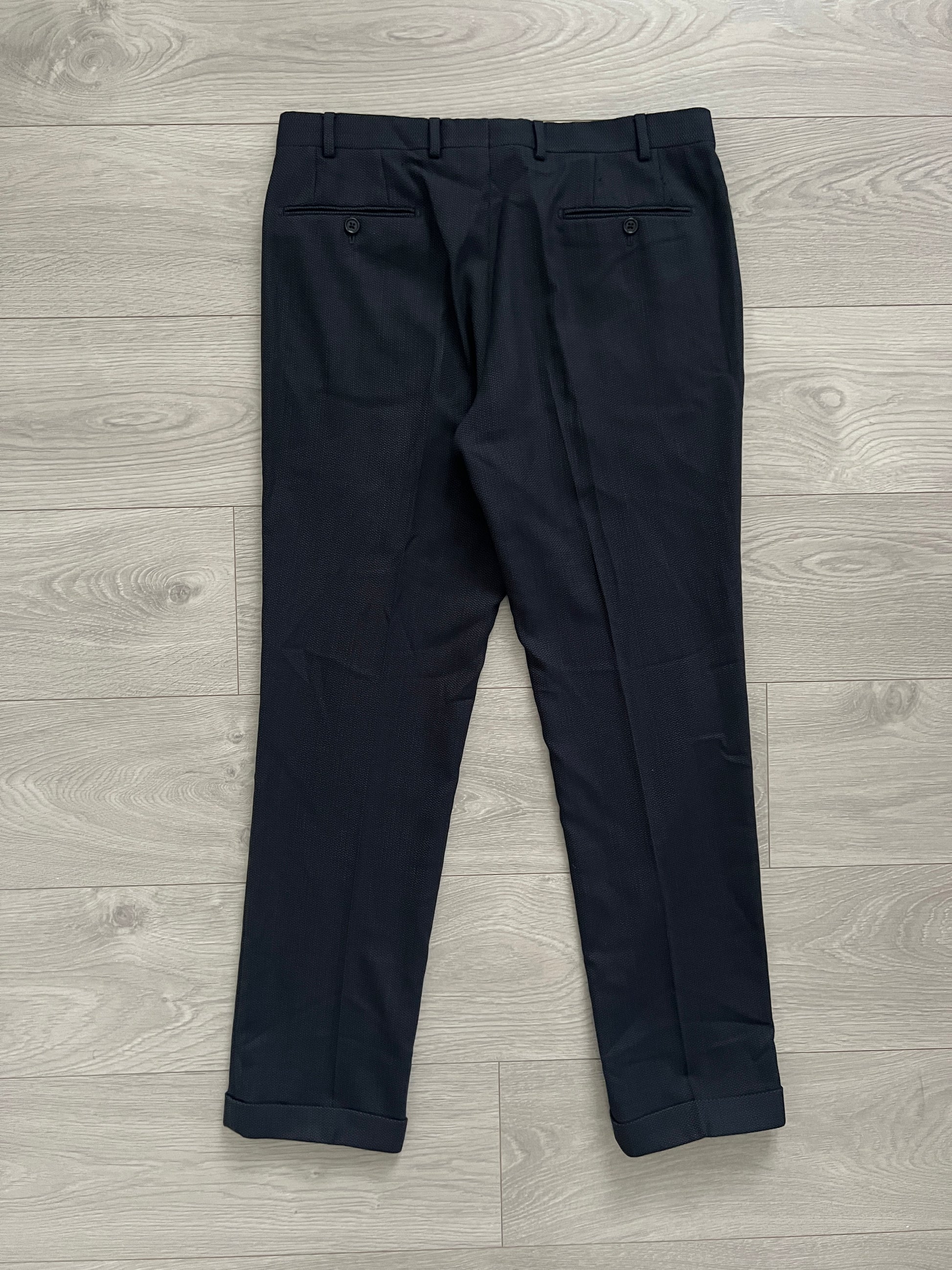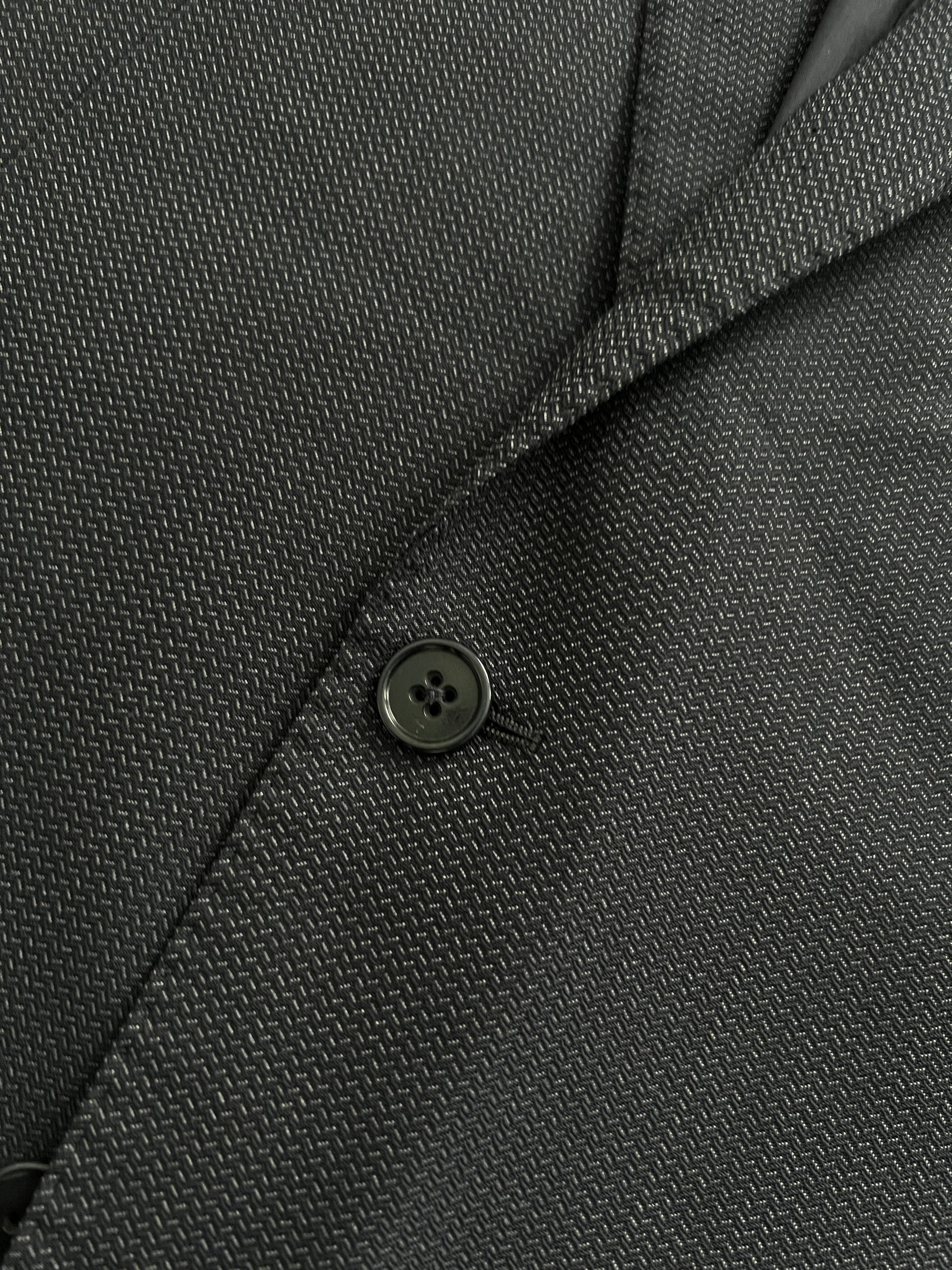 Armani Wool Pleated Blue Textured Suit - Size L Jacket / 34" Waist