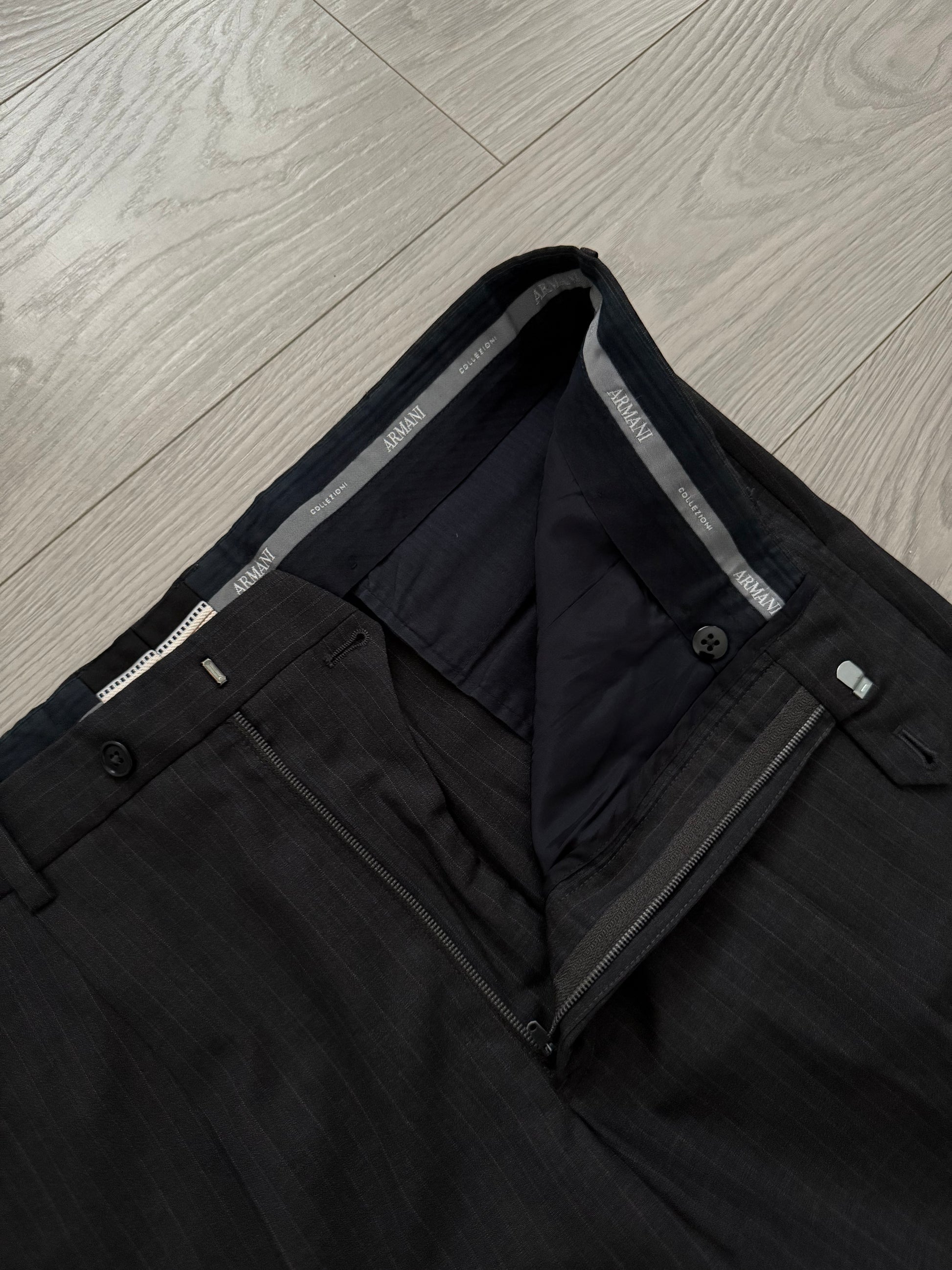 Giorgio Armani 1990s Striped Pleated Wool Suit - Size L Jacket / 36" Waist